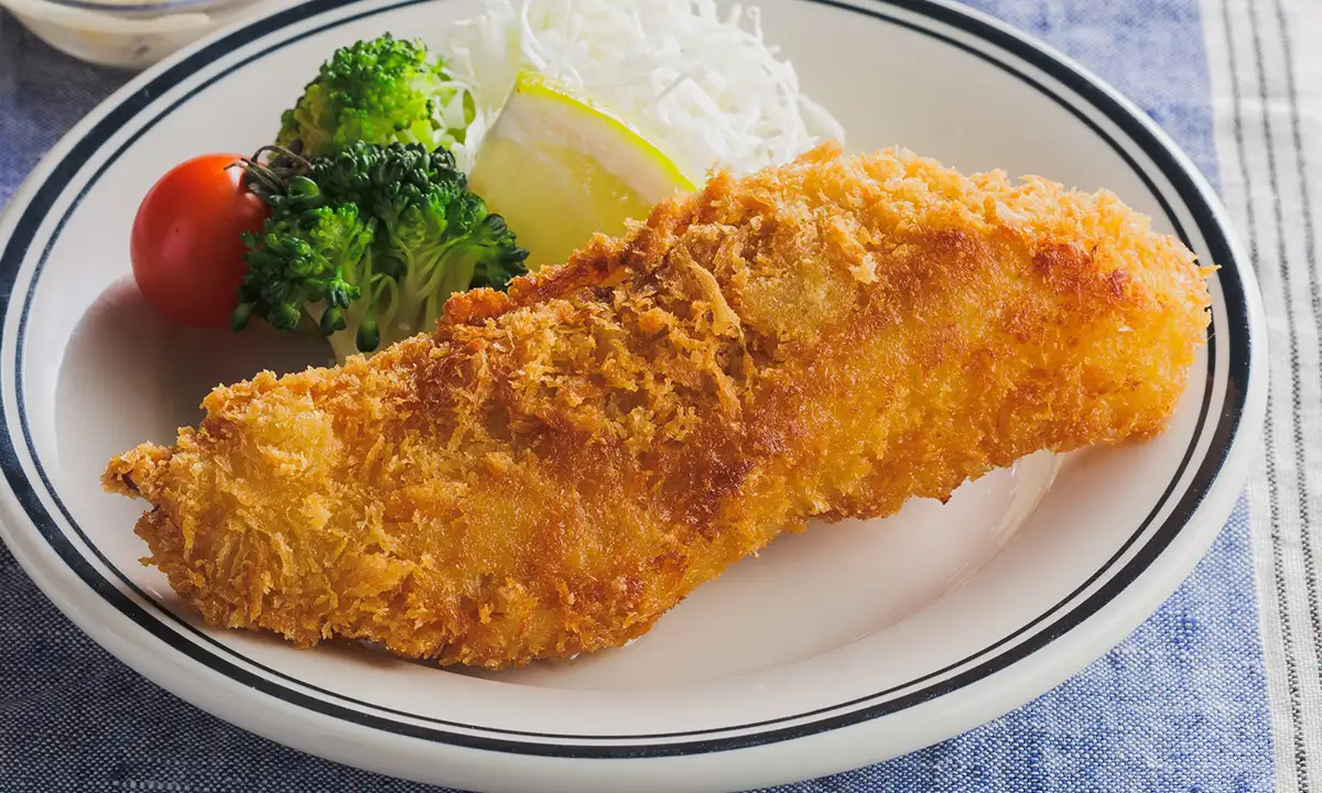 国産天然海水塩で丁寧に仕込んだ“ましお造り”の鱈は、ふっくら柔らかく旨味が際立つ仕上がり。生パン粉の香ばしさが重なり、家庭で専門店の味わい。