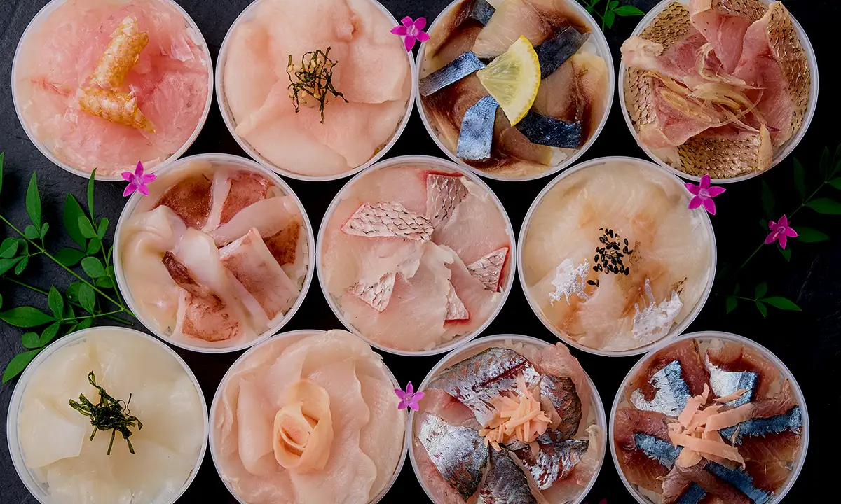 40種以上の地魚からその日揚がった最良の11種を選び、一口サイズの寿司に仕立てました。手軽さと高級感を兼ね備えた港のご馳走。