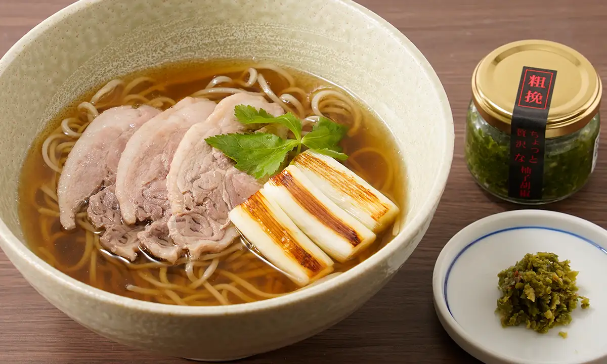 そば処海山が作る自家製生そば京鴨南蛮と粗挽き柚子胡椒セットを新発売