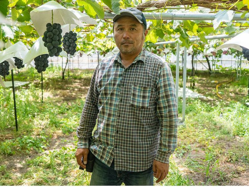 園主の竹野寛士さんは、1999年に農園を継いでぶどう作りを始めました。有機肥料を使った土づくりを行い、化学農薬も極力減らして、40000房以上のぶどうを栽培し厳選されています。