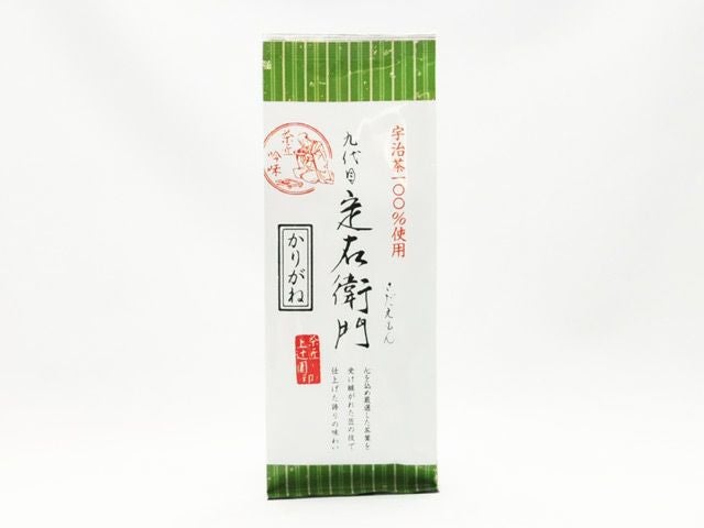 九代目定右衛門が吟味したこだわりのかりがね茶。受け継がれた伝承の技で仕上げました。宇治茶100%使用。
