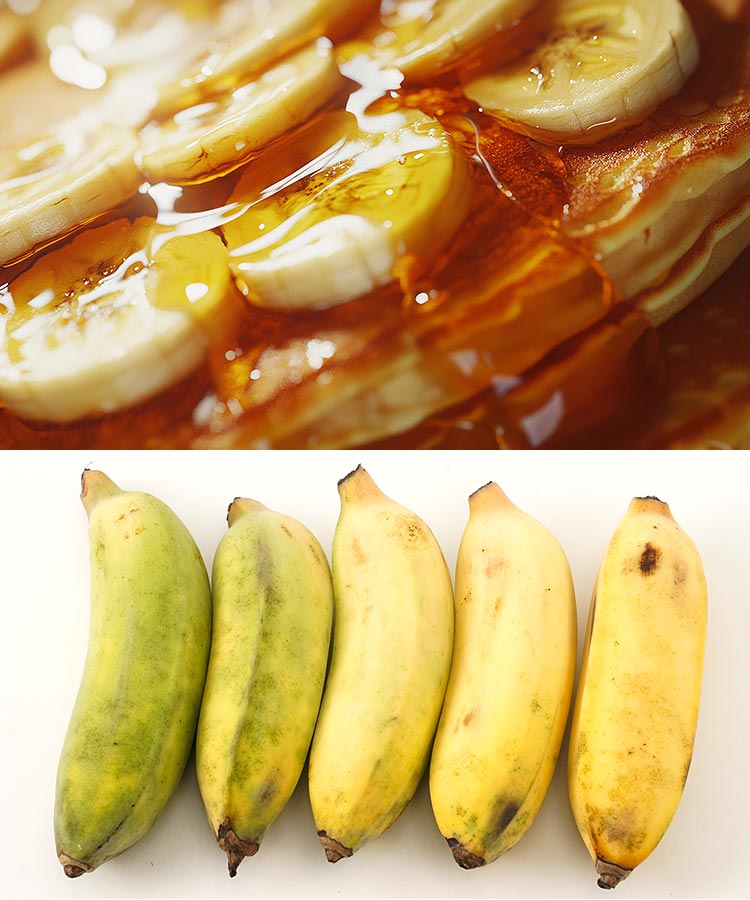 アップルバナナは熟度の変化によって多彩な味わいを楽しめます。皮に黒い斑点が出てきた頃は爽やかな酸味と軽やかな甘みが調和し、さらに追熟が進み皮が黒くなると甘さが際立ち、モチモチとした食感に。