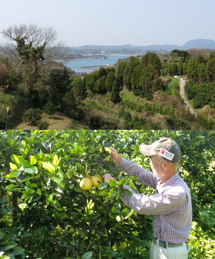 このポンカンは、化学合成農薬を慣行栽培の50%以下に抑えた「特別栽培」認証品です。除草剤は原則不使用。代わりに、土着天敵の活用や、植物・魚介由来の天然エキス(天恵緑汁、海藻緑汁、天然アミノ酸)を用い、自然の力を引き出す栽培を行っています。