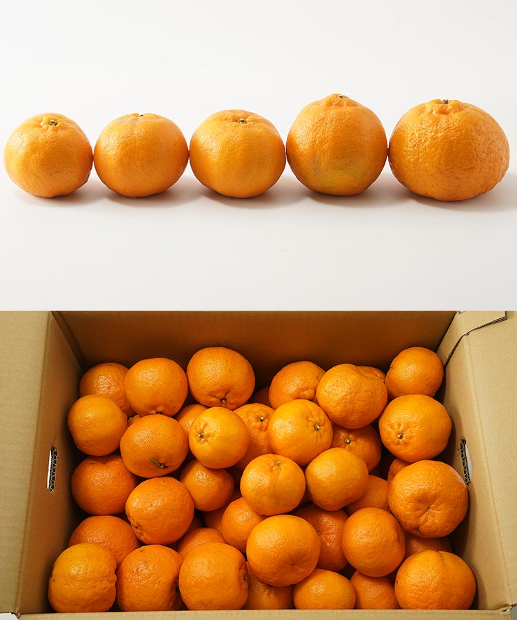 L~3Lサイズが混載となっています。果皮に傷があったり、形が悪い果実も入っています。