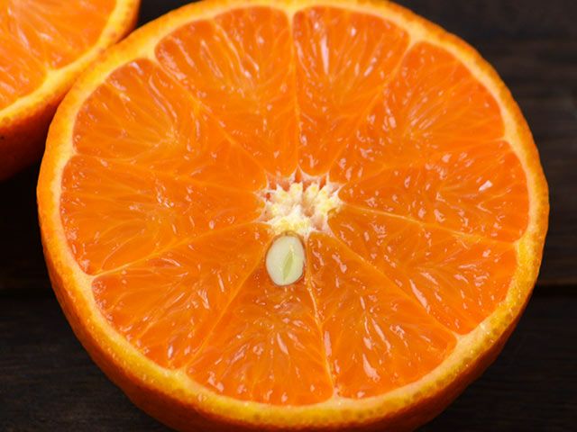 皮は手でむけなくはないですが、薄くてぴったりとくっついているためむきにくいです。オレンジのようにスマイルカットしたほうが食べやすいです。果皮には結構キズがついています。キズの多少による味の差はありません。市橋農園では樹上完熟しているものしか収穫しません。果皮が濃いオレンジになってますが、一部黄色になってる部分があります。太陽光の当り具合によるもので、熟度によるものではありません。
