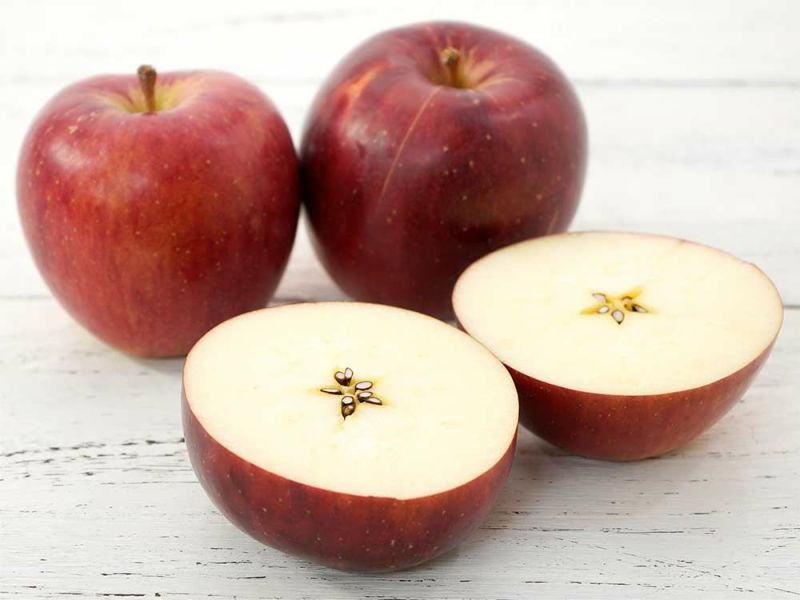 「大きめで、形状、玉揃いとも優れており、着色は、人目の引く縞入りの全面濃紅色で品種固有の特長を有し市場性が高い。果実品質は、硬度15.3ポンド、糖度15.9%と明らかに高く、他を凌いでいる。肉質も緻密で果汁も多く、食味、鮮度とも抜群。」