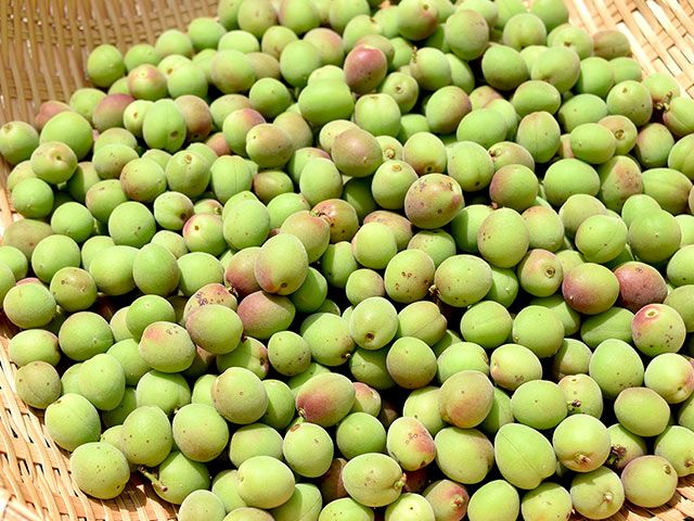 梅の中でも旬が早く、いち早く手に入るのが小梅です。実がギュッと締まり硬めなので、梅ジュースやカリカリ梅に向いています。梅漬けや醤油漬けにもピッタリ。小粒なので小さな瓶で保存できるため、少量ずつ色々楽しみたいという方にオススメです。