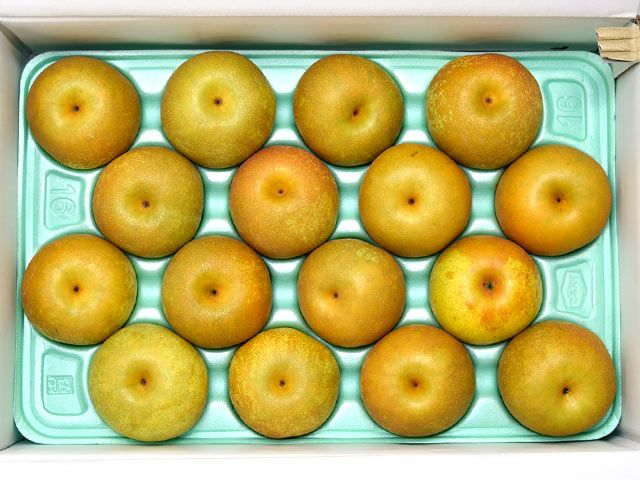 2003年に登録された品種で、赤梨と青梨を掛け合わせています。青梨の肌に赤梨の色が混ざったみたいになり、見た目は良くないのですが、糖度がとても高くなり、緻密な果肉の食感はやわらかく美味しいです。