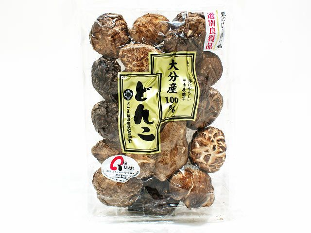 この乾しいたけは、大分県内のしいたけ生産者が自分たちで育てた樹齢15-20年生の原木(主にくぬぎ)を使い、その原木から発生した椎茸を丸1日かけ乾しあげたものです。