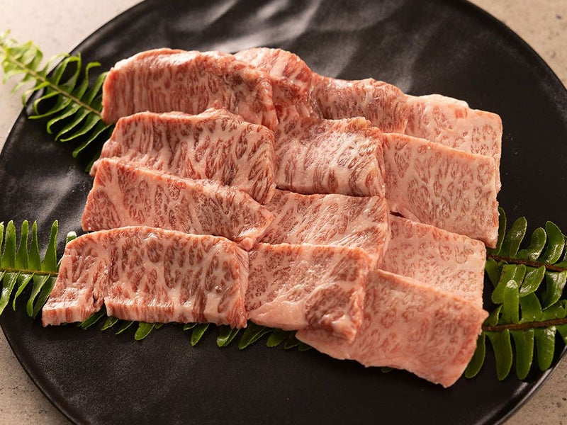 非常にきめ細かいサシが入った霜降り肉の焼き肉用カットです。平井牛のサラリとした甘い脂を存分にお楽しみいだけます。焼肉を美味しくお召し上がりいただくため、決して焦がさず焼きすぎないことにご注意ください。また肉の甘みが感じられるよう岩塩やわさび醤油がおすすめです。