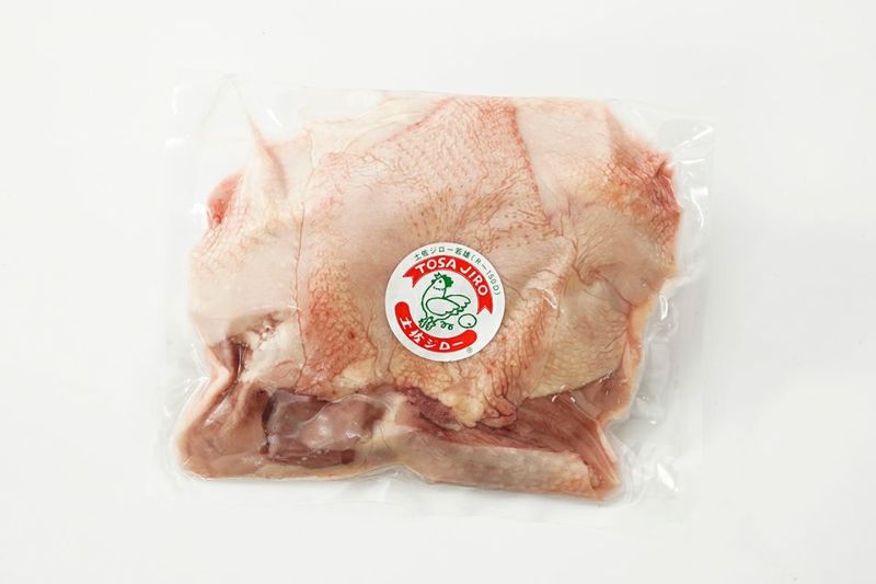 土佐ジローは、ブロイラーに比べて2倍以上の飼育時間がかかるうえに、ブロイラーの半分の大きさにしか成長しません。また、安芸市畑山の恵まれた自然環境の中、太陽の当たる鶏舎でのびのびと育てられているので、鶏はとても健康。ギュッと締まった肉質で、モモ肉はジビエのようなとても野趣あふれる味わい、ムネ肉は脂が少なく歯切れのいい食感と旨味が楽しめます。現地ではトサカや肝を生で食べられるほど臭みなどが一切ない鶏です。