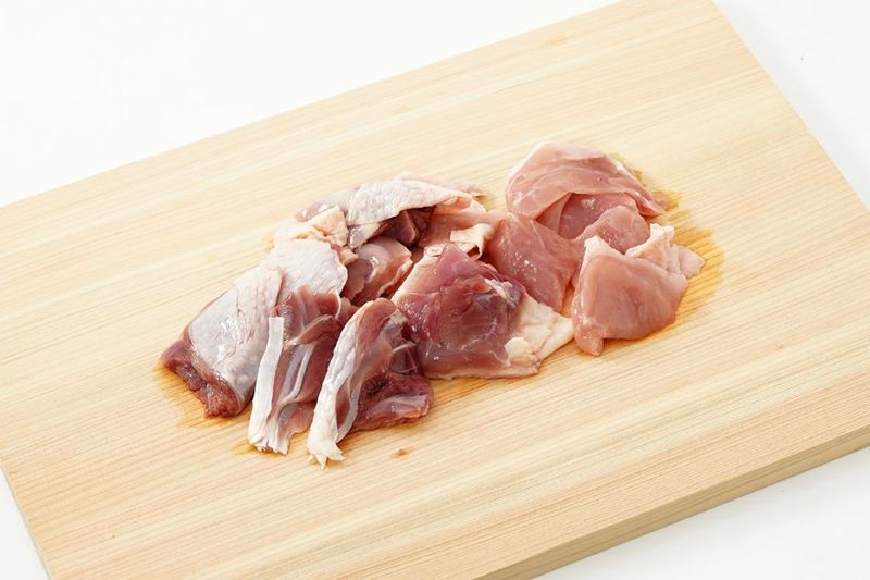 モモ、ムネ、ササミの部位をカットしたお肉です。一口サイズにカットしてありますので、親子丼や鍋など材料として簡単にご利用いただけます。
