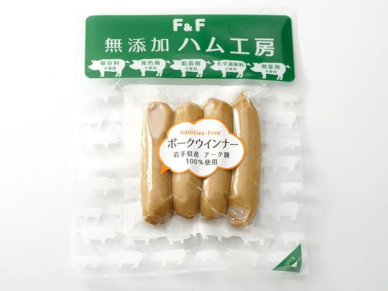 自然食品F&F無添加ハム工房で作る添加物不使用の無塩せきポークウインナー