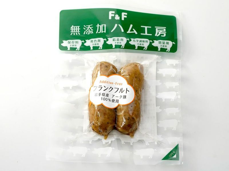 自然食品F&F無添加ハム工房で作る添加物不使用のフランクフルト。