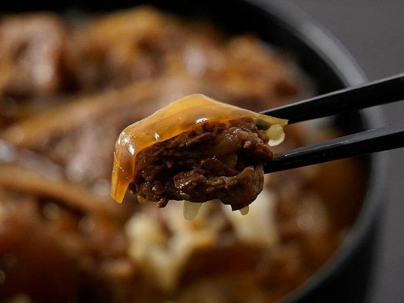 肉は一度湯でこぼしを行い、余分な脂や臭みを取り除くことで、上品で澄んだ味わいに仕上げています。さらに隠し味として山形高畠ワイナリーの赤ワインを加え、牛肉のコクを引き立てました。国産玉ねぎの甘味と米沢牛の旨味が溶け合い、ご飯にかけるだけで専門店のような牛丼が完成します。