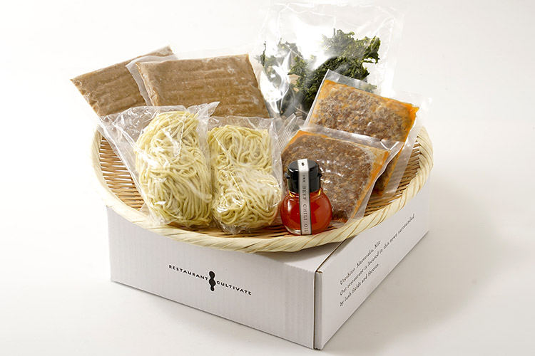 三重・松阪の創作中華料理店レストラン・カルティベイトの味をそのままに。お店の人気メニュー濃厚豆乳担々麺とオリジナル松坂牛辣油のセット。