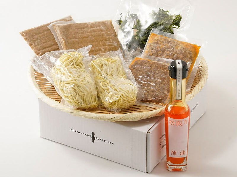 三重・松阪の創作中華料理店レストラン・カルティベイトの味をそのままに。お店の人気メニュー濃厚豆乳担々麺とオリジナル松阪牛辣油のセット。