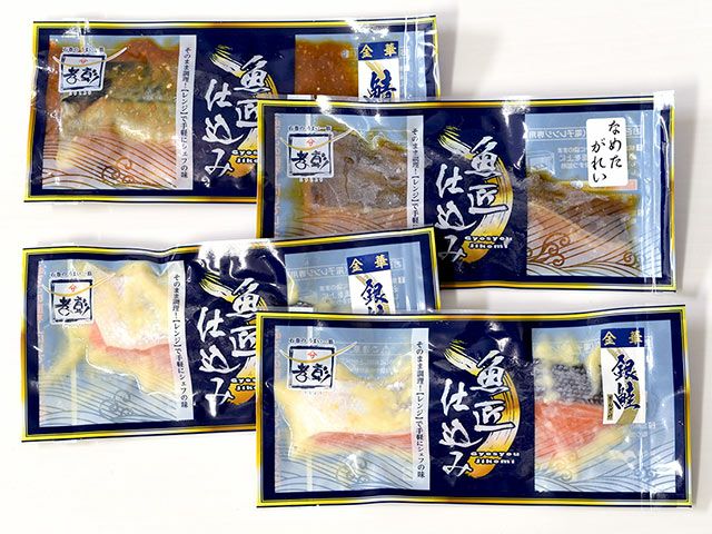 金華銀鮭西京漬け1切入×2、金華さば味噌漬け1切入×1、なめたがれい味醂漬け1切入×1
