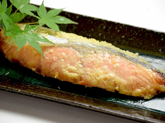 華やかな香りがあり、甘みのある白みそが鮭の旨みを引き立てます。身はしっとり柔らかです。