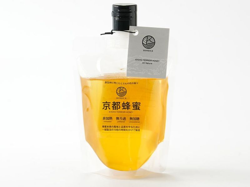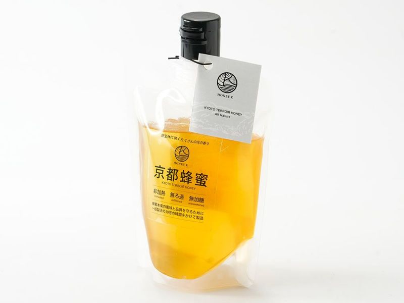 京都市北部の森の花々から採れた、非加熱・無濾過の蜂蜜。香りで味わう上品な甘さ。