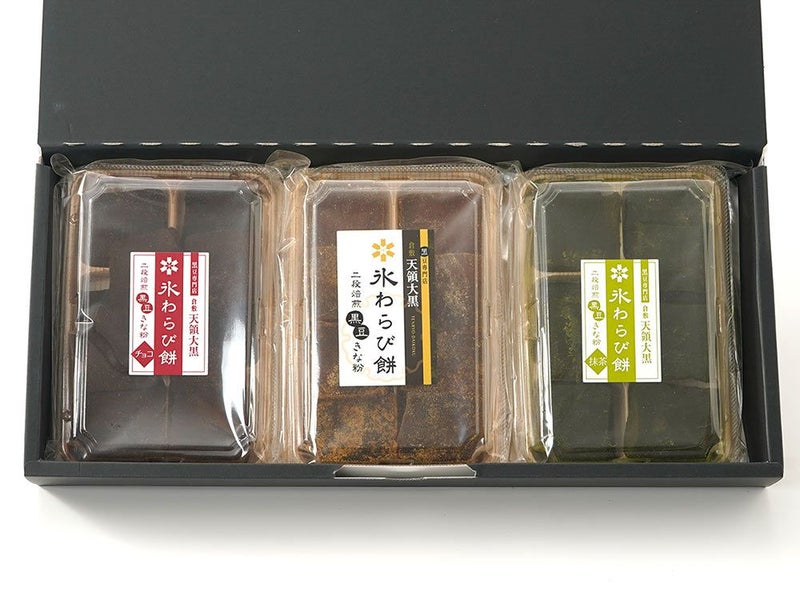 岡山県倉敷の黒豆専門店「倉敷天領大黒」が作るわらびもち。黒豆を二段焙煎仕込みで焼き上げ、非常に香ばしいきな粉を作り上げました。