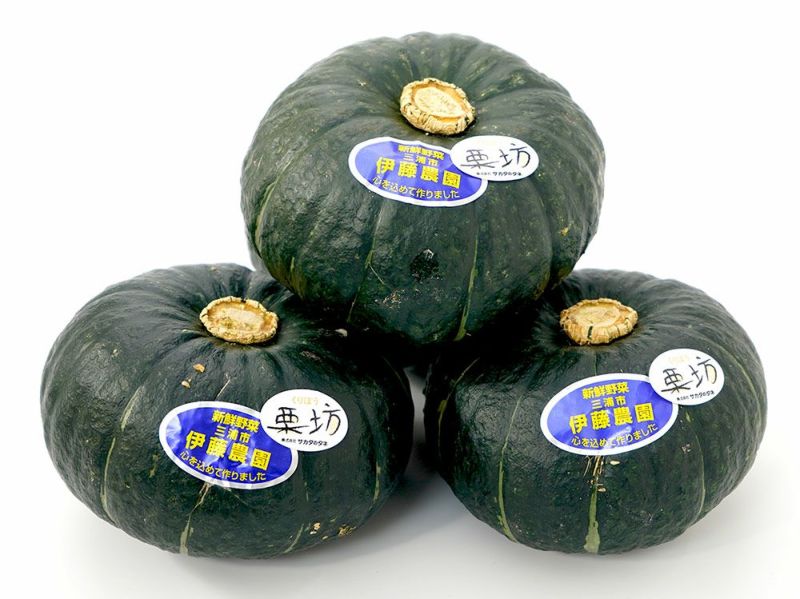 伊藤農園が作る完熟かぼちゃ。1玉500g前後のミニかぼちゃ。甘くてホクホクの食感があります。