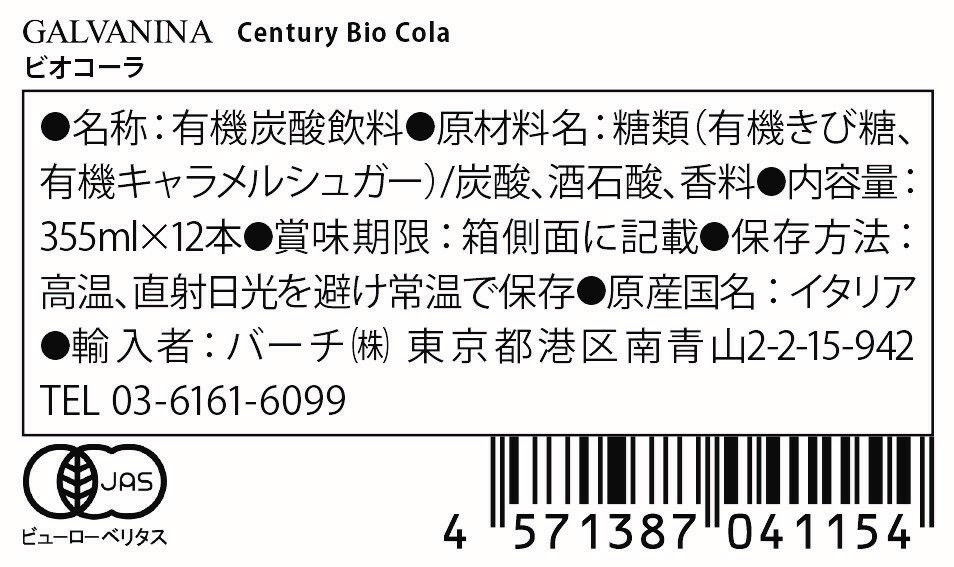 他の画像を見る お気に入り追加 GALVANINA Century オーガニックコーラ(355ml)12本入り 販売期間 2022/04/01 9:00 〜 ¥ 6,609 税込 送料無料 日時指定不可 【注意】年末年始(12月下旬~1月上旬)配送ができません。年明け1月中旬より発送開始いたします。通常、3~7日ほどで発送します。 (0)