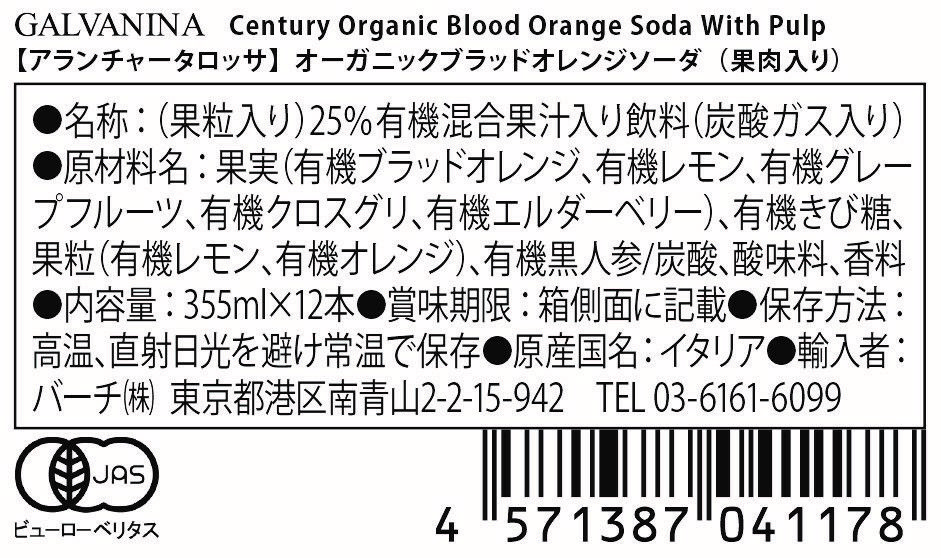 他の画像を見る お気に入り追加 GALVANINA Century【アランチャータ ロッサ】ブラッドオレンジ(355ml)12本入り 販売期間 2022/04/01 9:00 〜 ¥ 6,998 税込 送料無料 日時指定不可 【注意】年末年始(12月下旬~1月上旬)配送ができません。年明け1月中旬より発送開始いたします。通常、3~7日ほどで発送します。 (1)