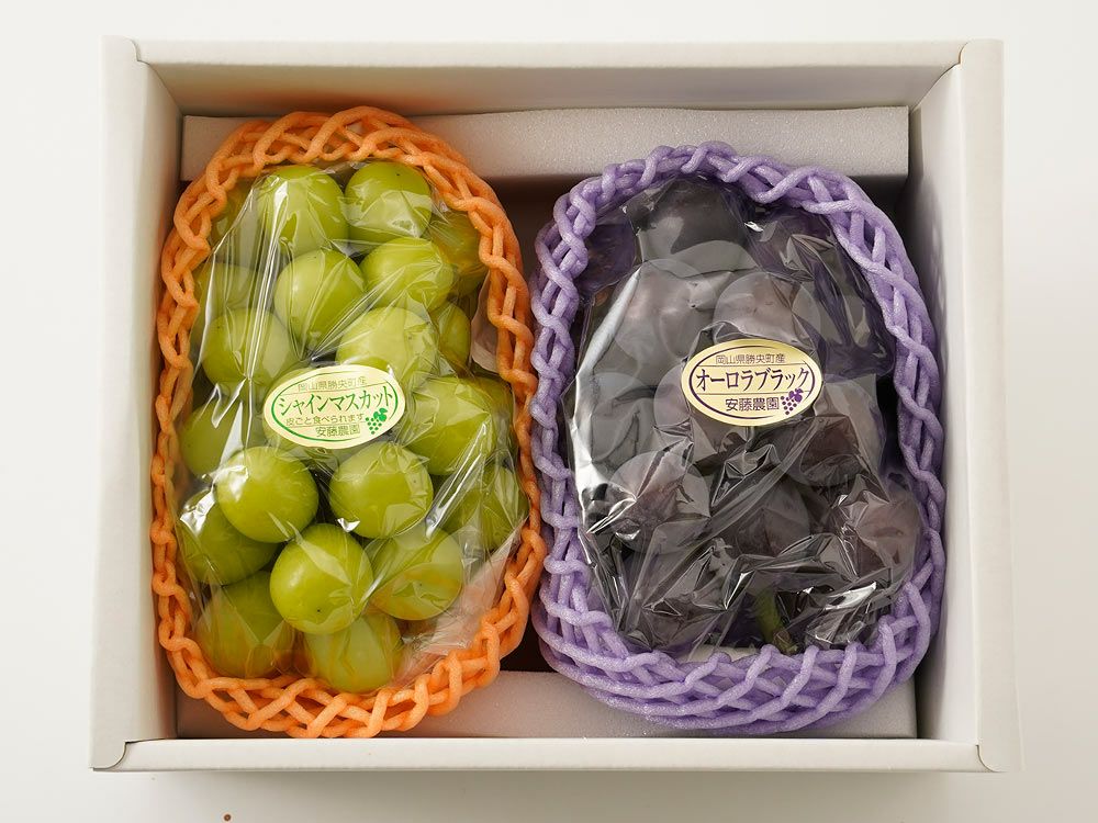 他の画像を見る お気に入り追加 安藤農園・オーロラブラックとシャインマスカット 2房入り 現在お取り扱いできません 販売期間外でお取り扱いできません ¥ 7,780 税込 送料無料 産地直送 日時指定不可 【注意】発送期間は8月下旬~9月中旬です。 (0)