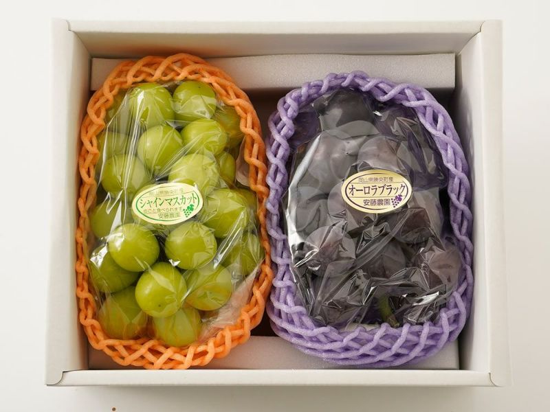 岡山県勝央町の安藤農園が作るシャインマスカットとオーロラブラックのセット。