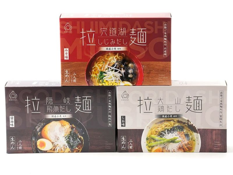 島根の特産品を使った3種の拉麺をセットにしました。