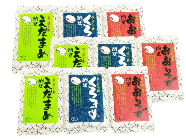 えだまめ納豆・くろまめ納豆・おおそで納豆 各3個(タレ付)