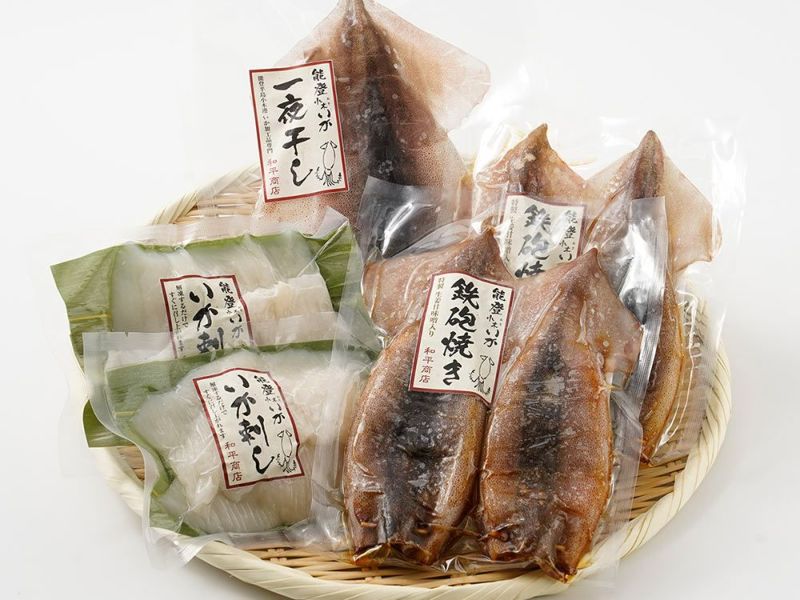鮮度抜群の能登小木いかをいろいろな形で楽しめるギフトセット。