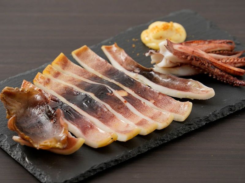 いか刺し×2、いかの鉄砲焼き×2、一夜干し×1