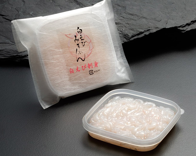 富山湾の宝石と呼ばれるほど美しく美味しい白えび。富山湾でしか獲れない希少なえびをお刺身に。