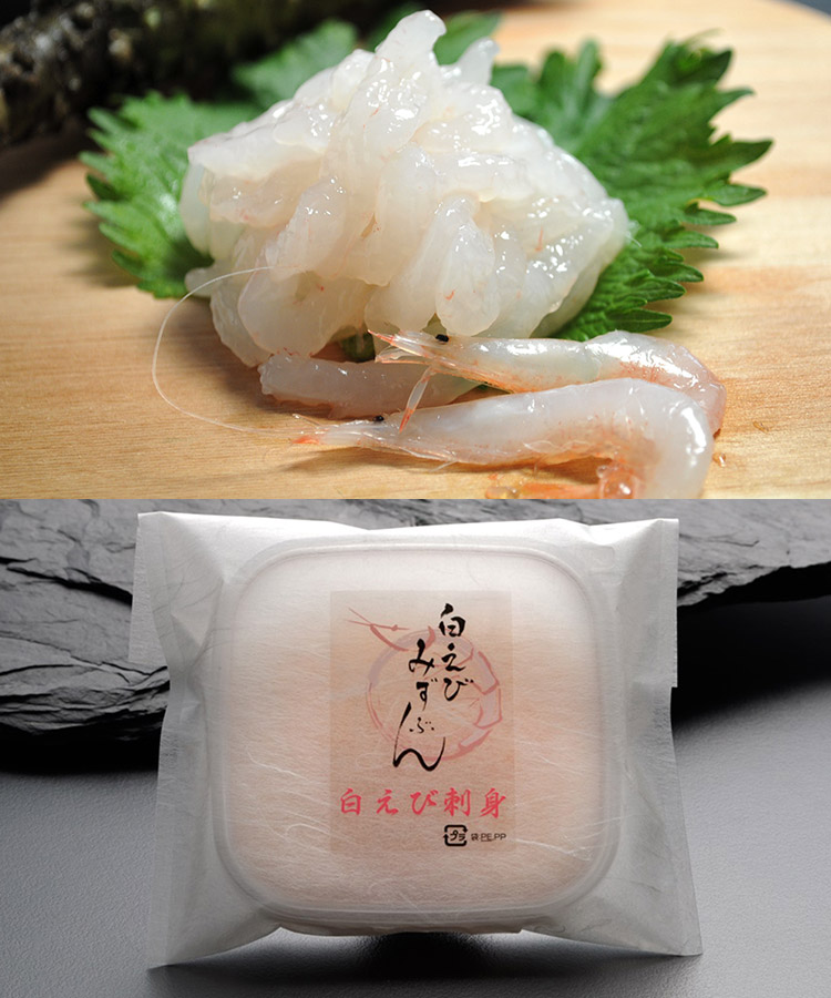 刺身用は、熟練の殻むき職人が一尾ずつ丁寧に手剥きします。身を潰さず、旨みを逃さず仕上げるには一年以上の修練が必要とされる高度な技術です。殻付きの白えびは、水揚げ時の鮮度感を保ったまま急速冷凍。用途に応じて最適な状態で加工することで、刺身・昆布〆・加熱調理それぞれに最高の品質を実現しています。専門店だからこそ可能なスピードと精度が、味の差を生みます。