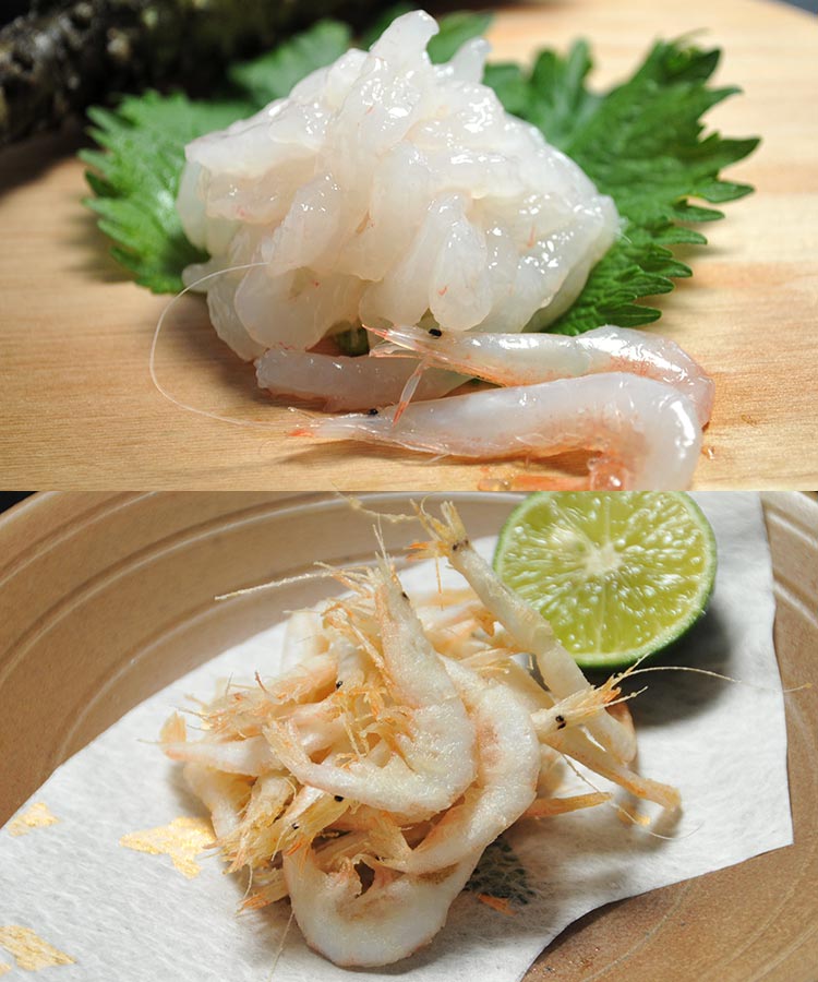 白えび刺身・白えび昆布〆・白えび殻付き