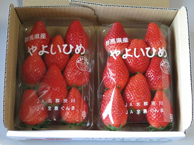 パック詰めは、プラスチックのパックに、苺を2段重ねで積んだものを箱詰めしたものです。味・品質は贈答用と変わりありません。