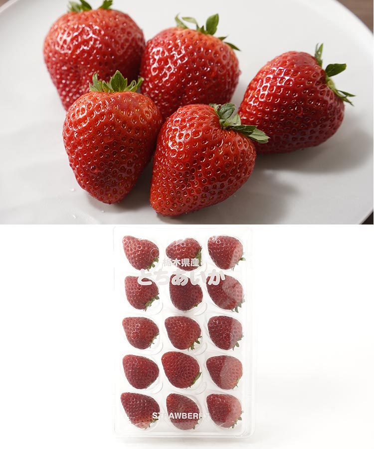 現在の栃木県を代表する主力品種が「とちあいか」。酸味が少なく、際立つ甘さとみずみずしさが特長です。丸みのある三角形の果実は、縦に切るとハート型になることも。
