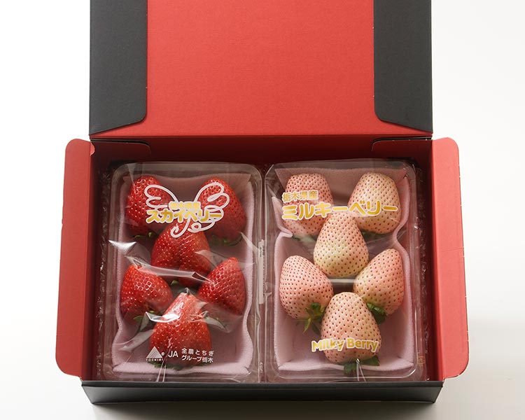 土耕栽培にこだわるフレーズが育てた栃木県産完熟いちご。完熟赤いちごと希少な白いちごのセット。