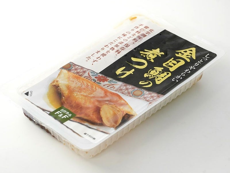 自然食品F&Fオリジナル、無添加冷凍食品の金目鯛の煮つけ。化学調味料、着色料、増粘剤などの添加物を使わずにつくり、味は本格派。