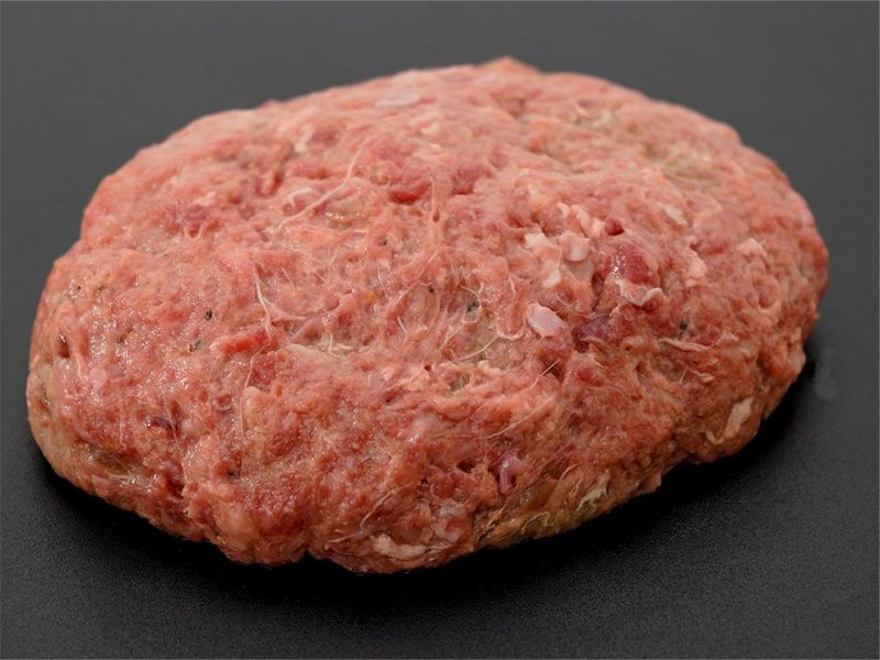 1個のハンバーグあたりに約80%の黒毛和牛を使っている贅沢なハンバーグです。タルタルソースのように、黒毛和牛肉を粗挽きにして混ぜ合わせています。生ハンバーグですので、お自宅でお好きな火加減でお楽しみいただけます。