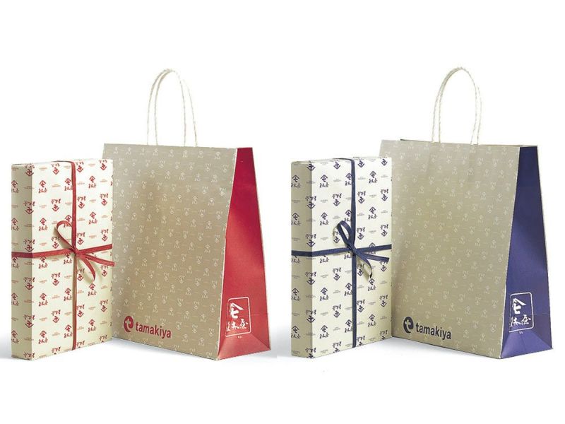 用途に応じて手提げ袋も付けられます。(仏事包装は青色になります。)