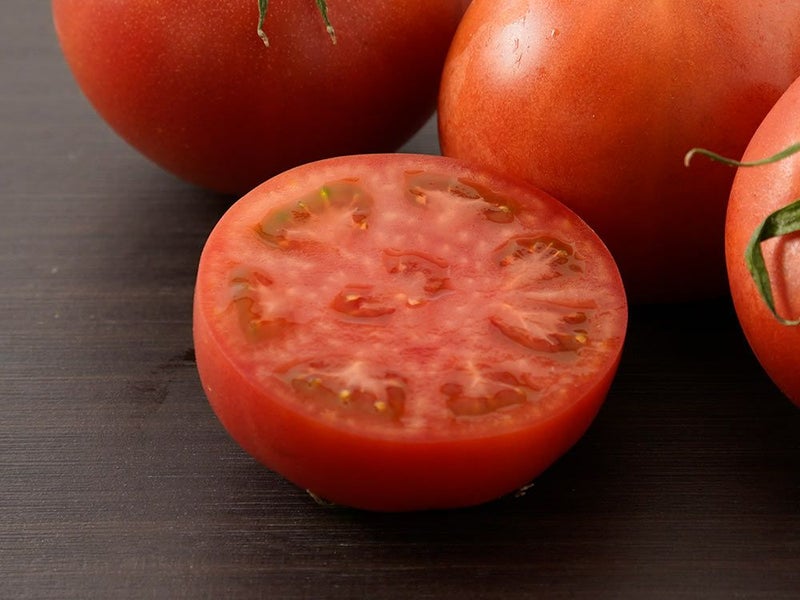 外観も美しく、鮮やかな赤色の果肉に放射線状に浮かび上がる白い線は、「スターマーク」と呼ばれる甘い完熟トマトの証です。充実した果肉はずっしりと重く、水に沈むほどの密度を誇ります。