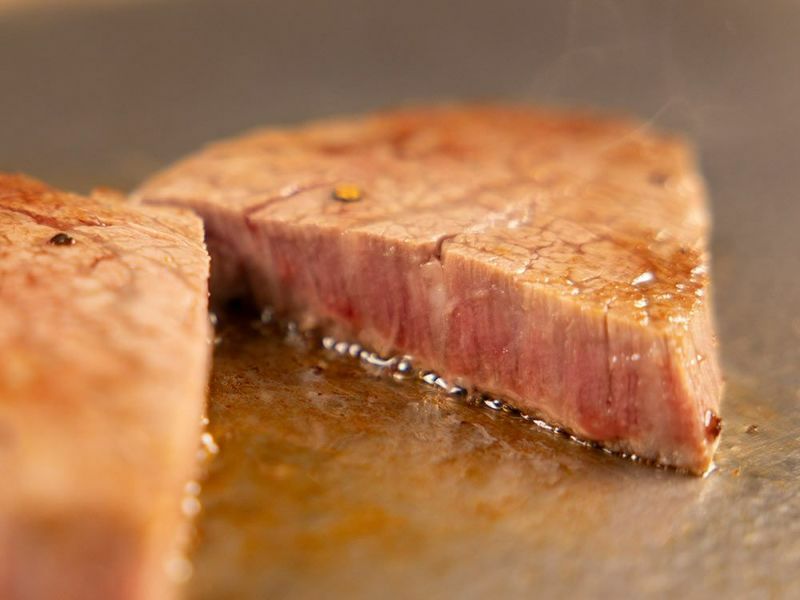 フィレは平井牛でもっとも人気の部位。フィレは一頭分の牛肉のうち、わずか3%しかない希少部位です。その肉質はどの部位よりもやわらかい。本来脂肪が少ない部位ですが、平井牛では非常にきめ細かいサシが入っています。その持ち味を活かすため、あまり火を通し過ぎず、レアがおすすめです。