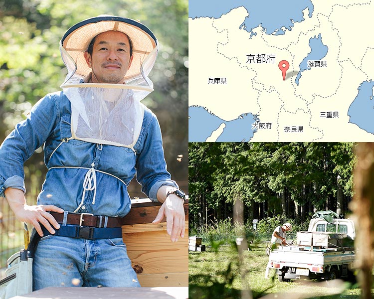 京都市北部(上賀茂・大原・八瀬・岩倉)の山と川の環境は、広大な農地が少なく農薬影響を受けにくい希少なエリア。ラベルには採蜜地を示すPlus Code(座標)を表記し、産地直送の「背景まで透明な蜂蜜」を届けています。