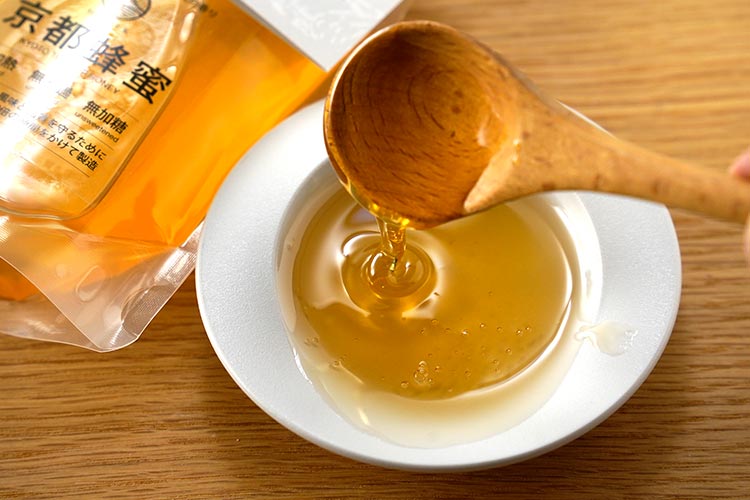 京都市北部の森の花々から採れた、非加熱・無濾過の蜂蜜。香りで味わう上品な甘さ。