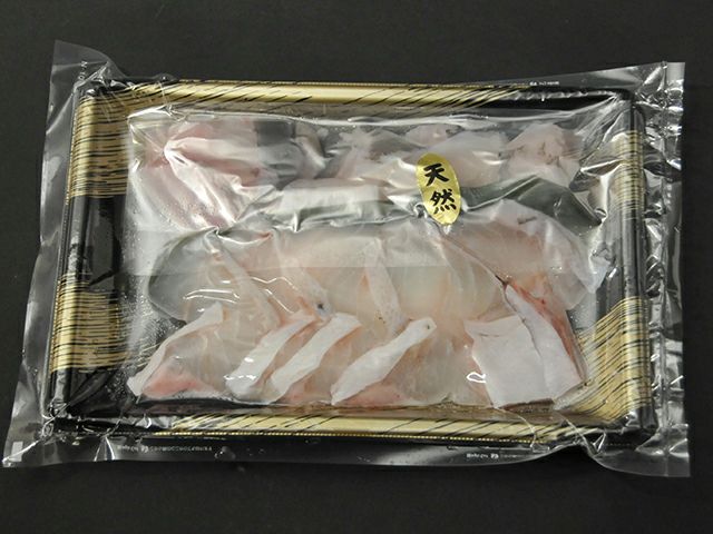 クエ名人の福井さんがさばいた天然クエ。脂がのった一級品の天然クエだけを厳選しています。その味わいは魚の王様。