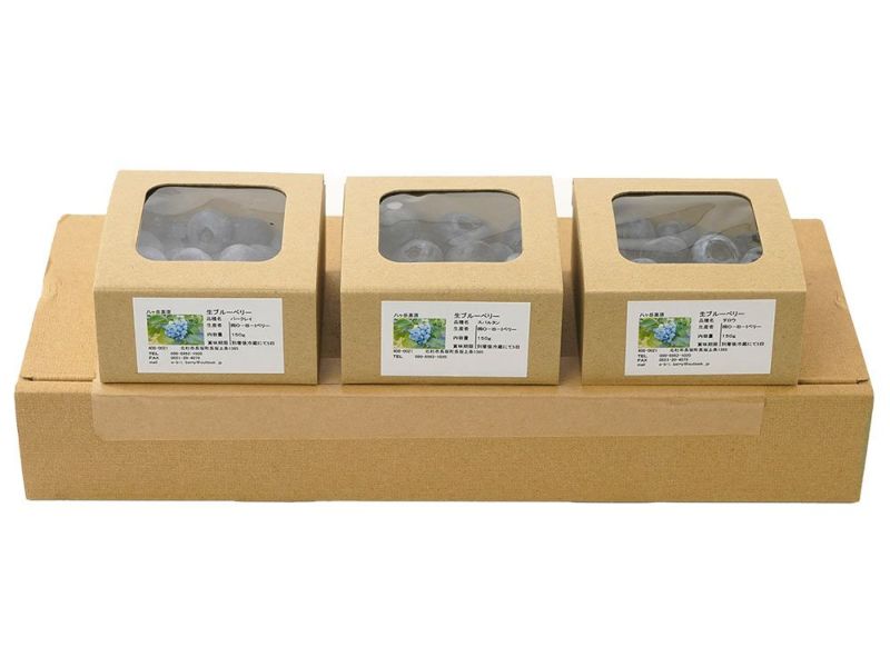 ハイブッシュブルーベリーの中でも2品種以上を組み合わせてセットにしています。味や香り、食感が品種ごとに異なりますので、食べ比べてお楽しみください。