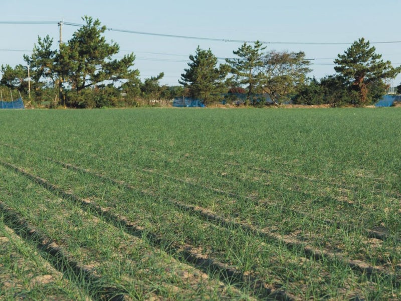 上釜さんの白宝らっきょうは鹿児島県さつま市の吹上砂丘で栽培していて、桜島の火山灰を含んだ砂のおかげで水はけ、肥料はけが良く、らっきょうにとって最高の土壌。黒潮の温暖な気候もあっておいしいらっきょうが育ちます。